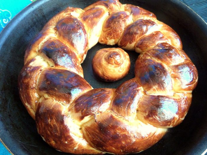 Переносим после остывания на большое красивое блюдо. Можно полить глазурью, но коса и так хорошо смотрится!
