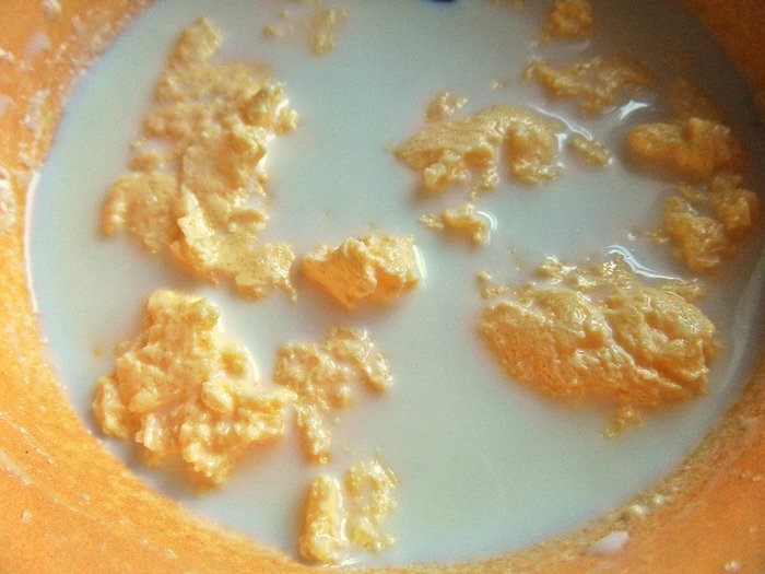 Смешиваем все для опары (молоко теплое) и даем постоять-ожить дрожжам. Свежих дрожжей нужно 15 г.