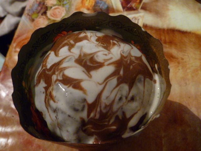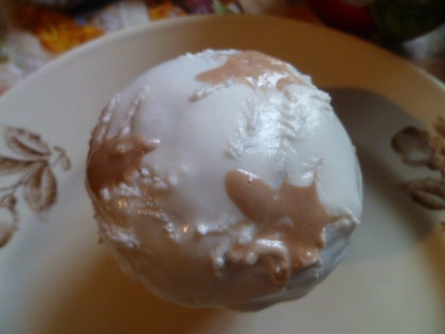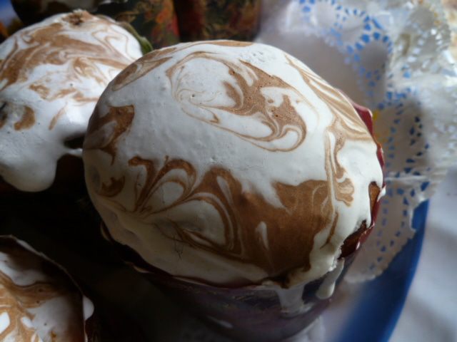 Сверху капаем немного глазури другого цвета.