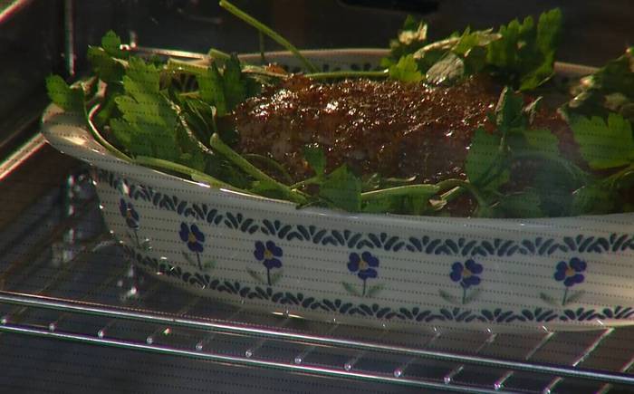 Запекать окорок в разогретой духовке час-полтора в зависимости от размера.