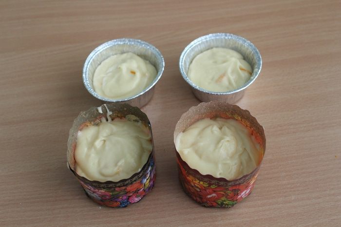 Выложить тесто в форму и запекать в разогретой до 180°С духовке 40-45 минут (для большого кекса) или 20-25 для маленьких.