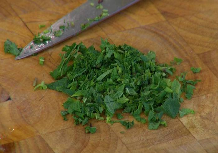 Мяту мелко порубить.