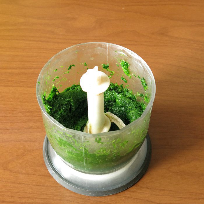 Отжимаем шпинат и измельчаем, добавляем сок лимона.