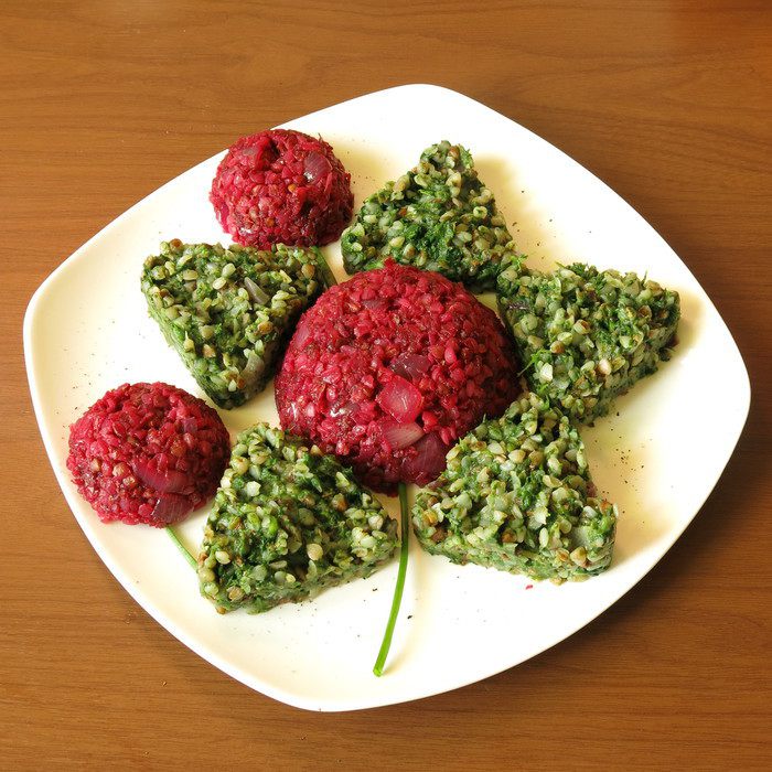 Если Вы любите гречку как герой епизода фильма «Девчата» и в пост решили разнообразить кашеварение, попробуйте цветную гречку. В интернете увидела рецепт красной крупы, немного пофантазировала и получился цветок из шпинатной и свекольной гречки, блюдо яркое и питательное. Приятного аппетита!