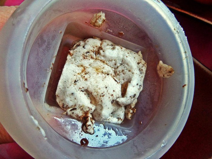 Ставим на 20-30 секунд при 750W. Масса сильно поднимется, выключаем печку и даем осесть, достаем.