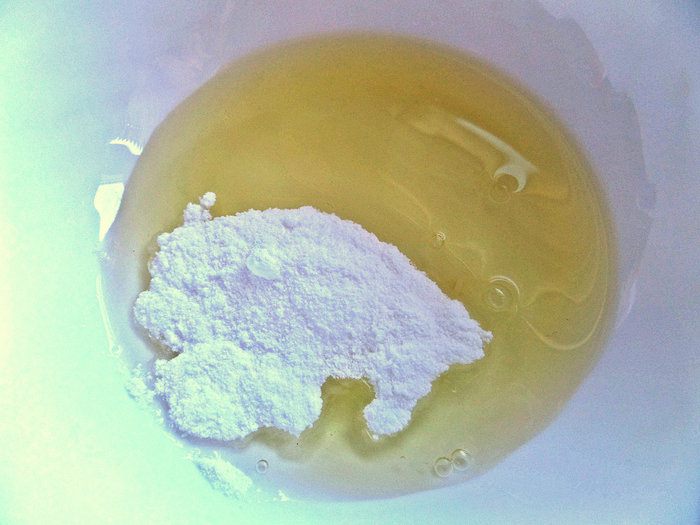 Белок охлажденный соединяем с пудрой.