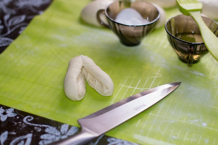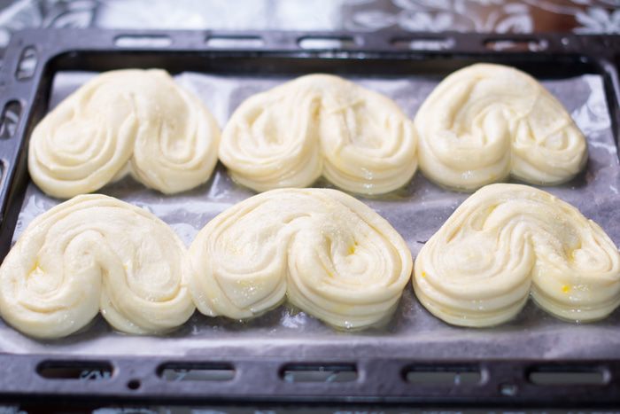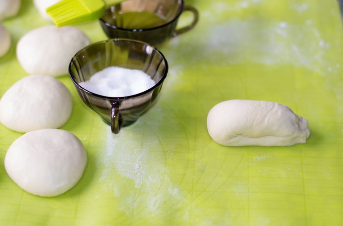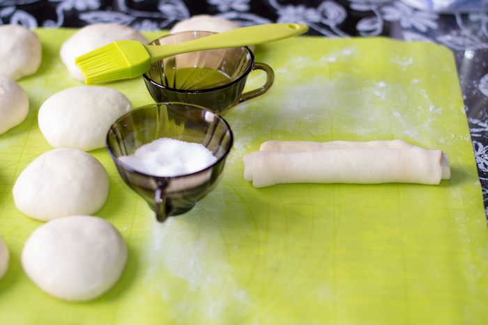 В теплое молоко добавить ч. л. сахара, всыпать дрожжи сухие быстродействующие. Дать им активизироваться.