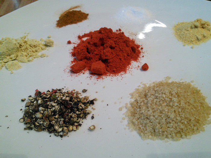 Свинину (шейная часть) вымыть, обсушить. Смешать сухие специи с кленовым сиропом (у меня мед) и оливковым маслом в кашицу и растереть смесью мясо. Тщательно. Упаковать в полиэтиленовый пакет и поставить в холодильник на 12 — в идеале 24 часа.