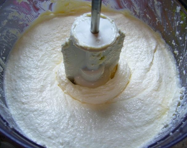 Добавить сахар, ванильный сахар. Еще раз взбить. Масса будет слегка жидковатой, пышной.