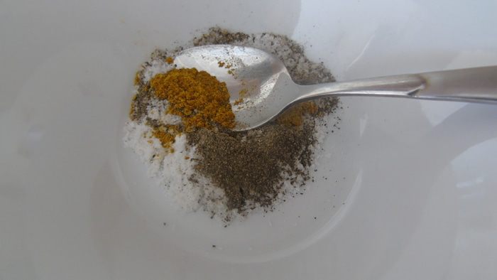 Смешиваем соль, перец, карри.