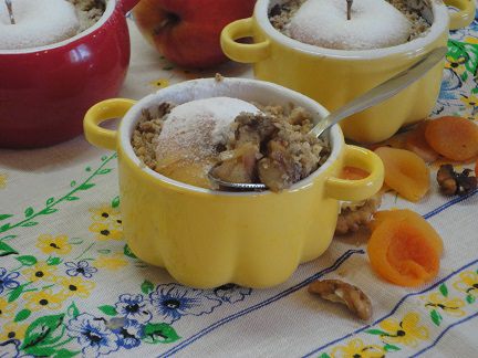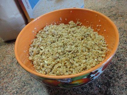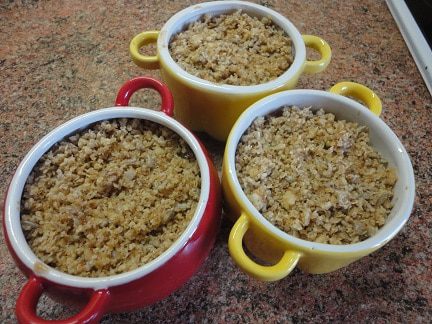 Сверху выложить орехово-овсяную крошку и запекать в духовке 20 минут при температуре 190°C.