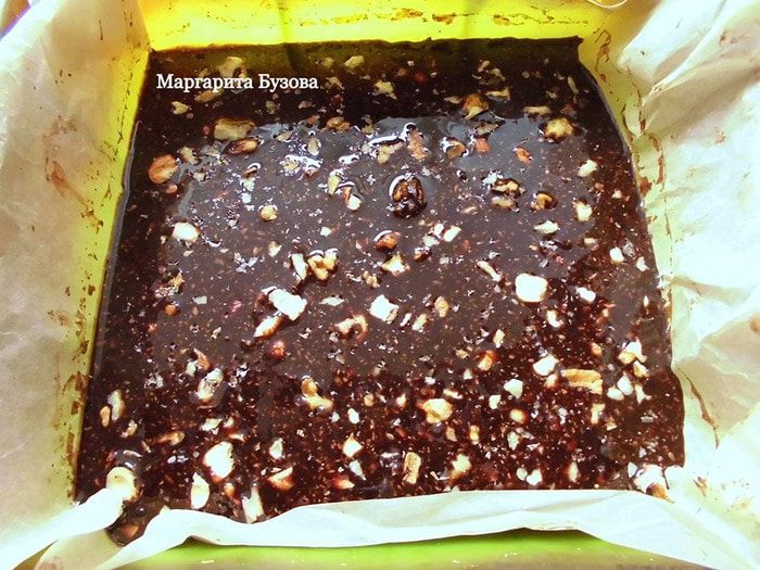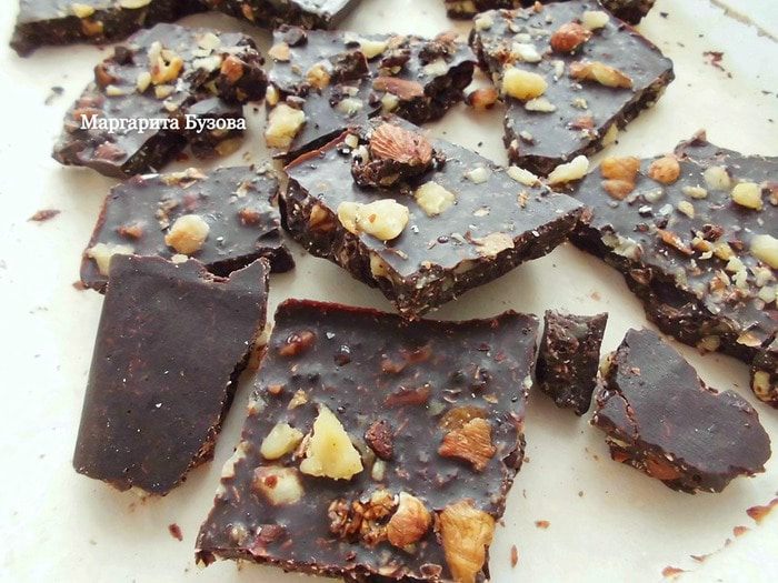 Добавить по частям кэроб. Сначала 2 ст. л., затем положить мед и оставшийся кэроб. Каждый ингредиент нужно тщательно перемешивать. Кэроб лучше предварительно просеять через сито, чтобы получилась более однородная масса. Его может понадобиться и больше. Некоторые добавляют на 100 г масла 100 г кэроба и более! Но у меня так не получается) Кстати, если Вы хотите, чтобы шоколад был более интенсивного вкуса, добавляйте меда поменьше. К тому же вместо кэроба можно использовать какао, но я все-таки предпочитаю кэроб.