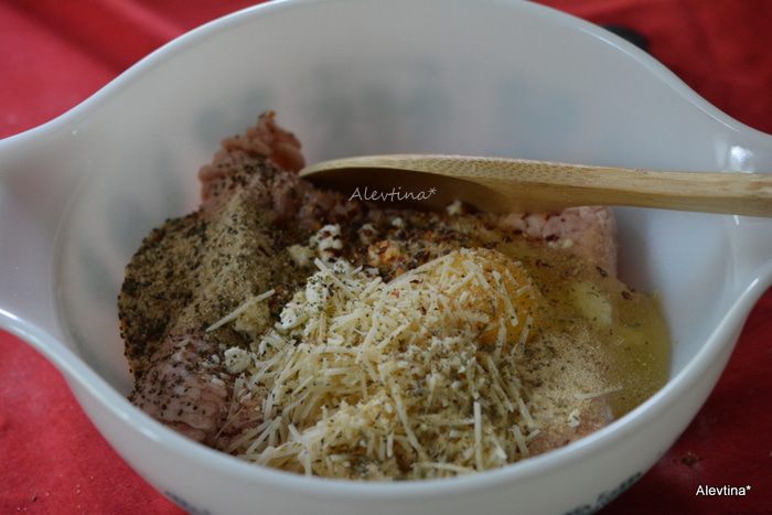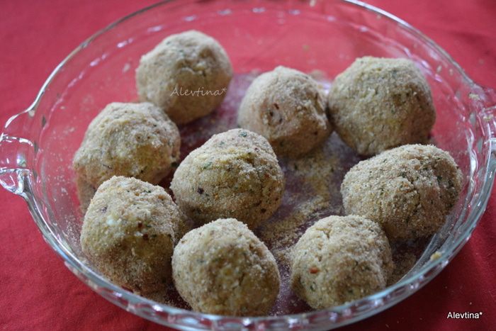 Сформировать небольшие фрикадельки. Выкладывать на тарелку с хлебной крошкой. Обвалять.