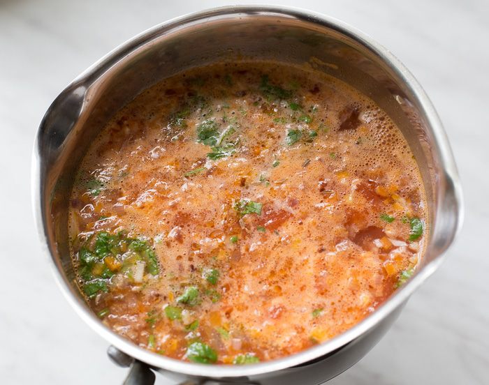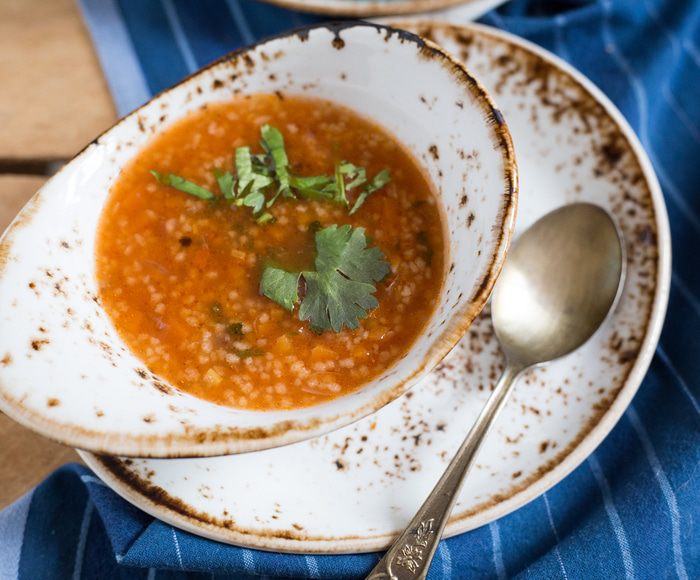 В этот вкусный и ароматный суп добавлено немного колорита Ближнего Востока. В основе – простые специи и чеснок, а кускус наполняет блюдо изумительными нотками.