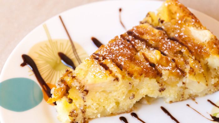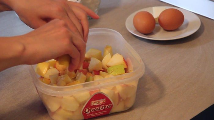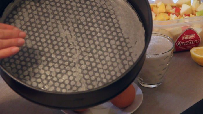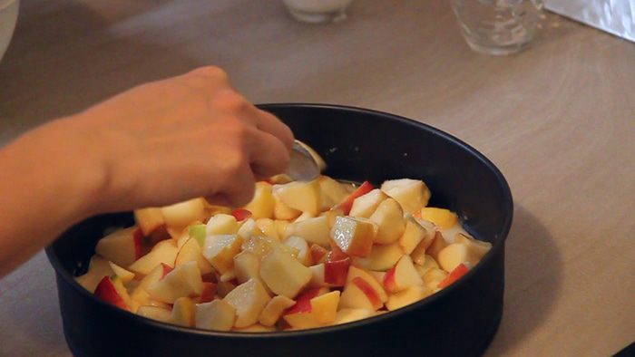 Далее моем, очищаем и нарезаем яблоки на кусочки среднего размера. Поливаем яблоки соком ¼ части лимона для того чтобы они не потемнели и сохранили свой презентабельный вид. Добавляем к яблокам сахар по вкусу и 3 столовые ложки кукурузного крахмала. Все аккуратно перемешиваем и отставляем яблоки в сторонку.