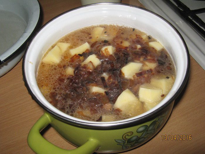 Теперь берем кастрюлю и кладем наши ингредиенты: