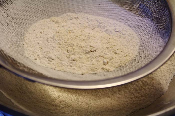 Сухие ингредиенты просеять в миску.
