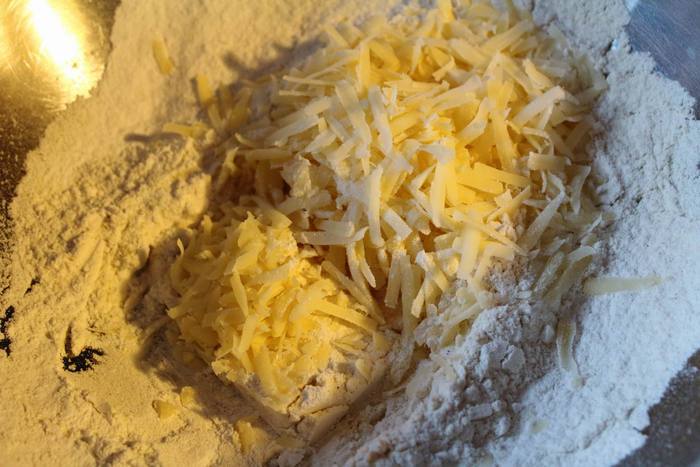 Добавить натертый сыр, оставив немножко для верхушки.