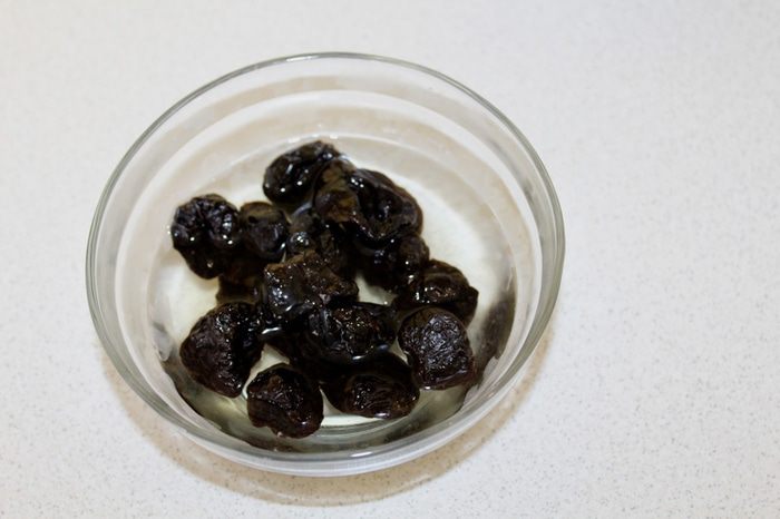 На следующий день мясо достать, чернослив залить кипятком на 10 мин.