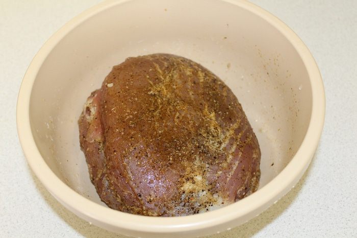 Мясо натереть солью и перцем и отправить в холодильник на сутки.