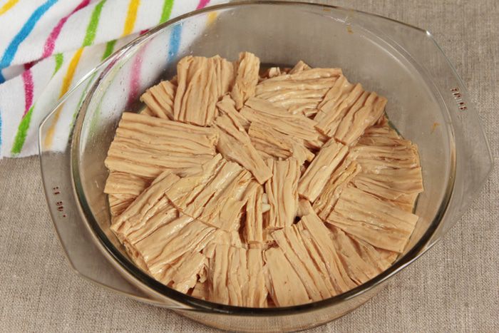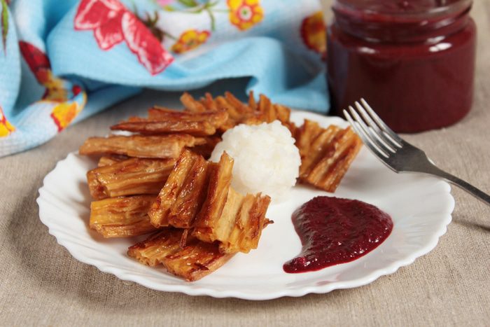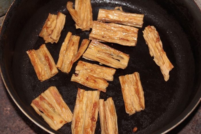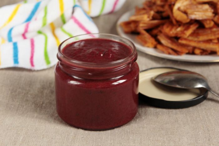 Вес вишни для соуса указан без косточек и сока. Можно использовать свежезамороженную вишню, предварительно ее разморозив при комнатной температуре. Сок от вишни тоже может пригодиться, поэтому не выливайте его раньше времени. Вишню смешать с сахаром и довести до кипения. Если вишня больше при нагревании не выделила сока, то добавить пару столовых ложек. Добавить мяту, какао-порошок, молотый перец красный жгучий и кленовый сироп. Все тщательно перемешать и варить до мягкости вишни. Пюрировать блендером, влить количество маринад от маринования фучжу до желаемой консистенции. Мне потребовался весь. Если маринада будет недостаточно, то добавить оставшийся вишневый сок. Довести до кипения, прокипятить минуты 3. Соус готов!