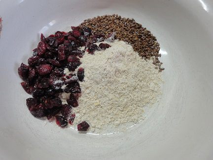 За рецепт спасибо Наталье. От себя я сократила количество сахара, изюм заменила клюквой. Мерный стакан — 200 мл.