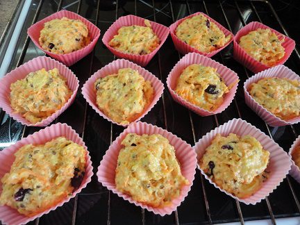 Раскладываем в формочки (12 штук) и выпекаем в духовке 30-35 минут при температуре 180°С.