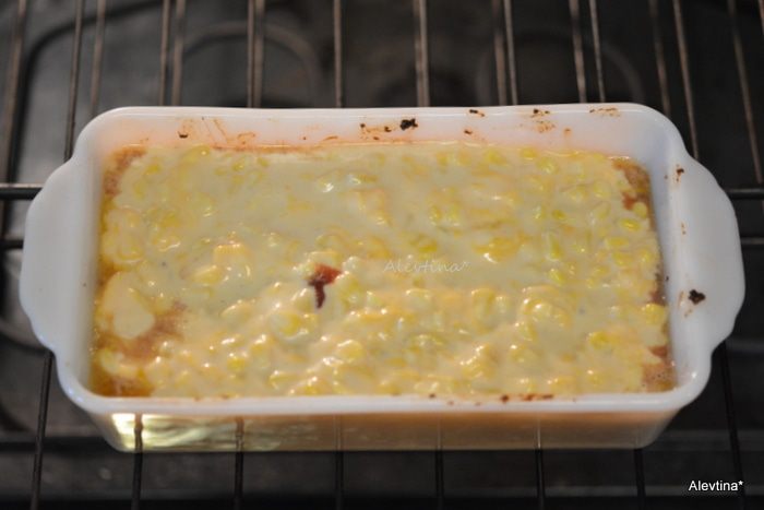 Вылить кукурузу поверх мясной буханки. Вернуть в духовку на 25 минут.