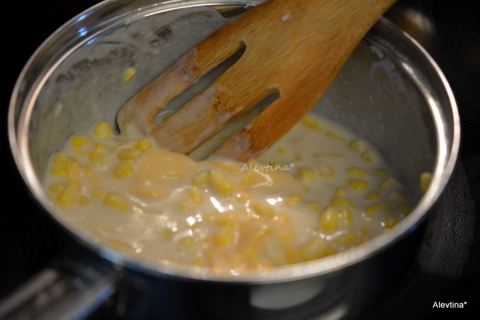 Растопить в кастрюльке сливочное масло. Добавить муку, соль, молоко. Перемешать. Довести до кипения, варить еще 1 минуту. Снять с огня. Добавить кукурузу без воды, сыр. Помешивать до растворения сыра.