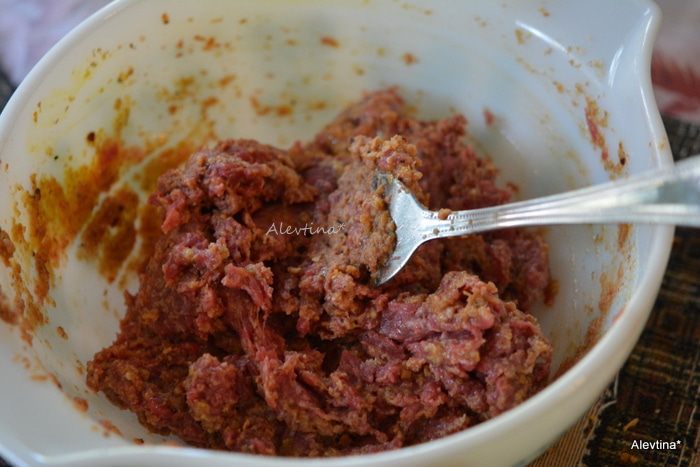 Добавить овсяных хлопьев, если фарш жидковат. Перемешать.