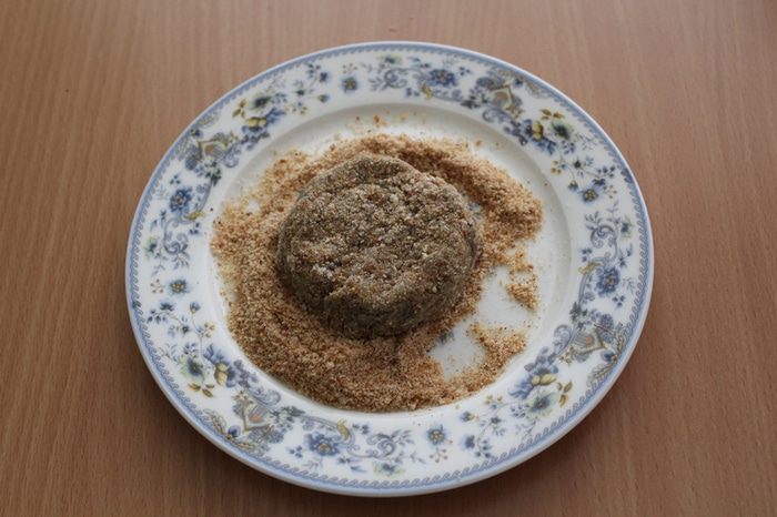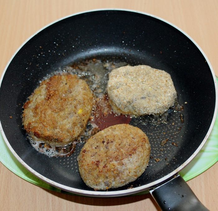 Сформировать котлеты, обвалять их в сухарях.