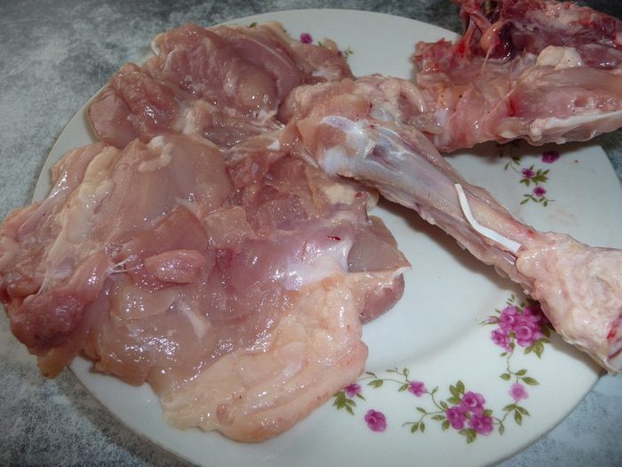 Из окорочков вынуть косточки.