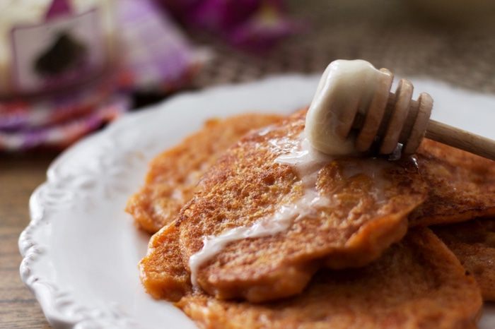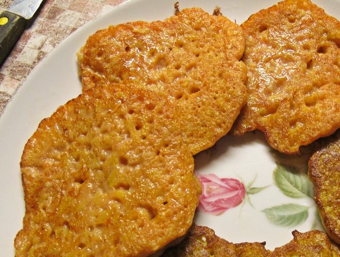 Подавать с медом и джемом. Если молоко заменить водой и не добавлять яйца, получится вполне постное лакомство.