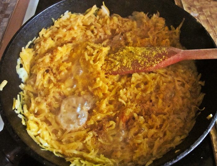 Натереть тыкву и яблоко на крупной терке.
