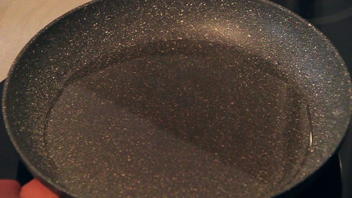 В сковороду наливаем растительное масло так, чтобы на дне сковороды образовался слой масла толщиной 0,5-1 см.