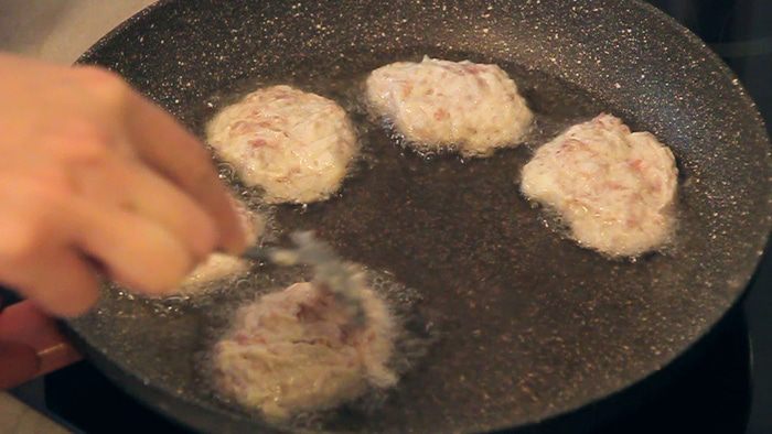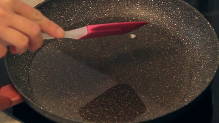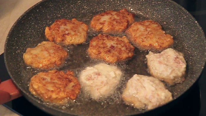 Для проверки закипания масла я в сковороду кладу очень маленький кусочек теста. По нему можно ориентироваться закипело ли наше масло.