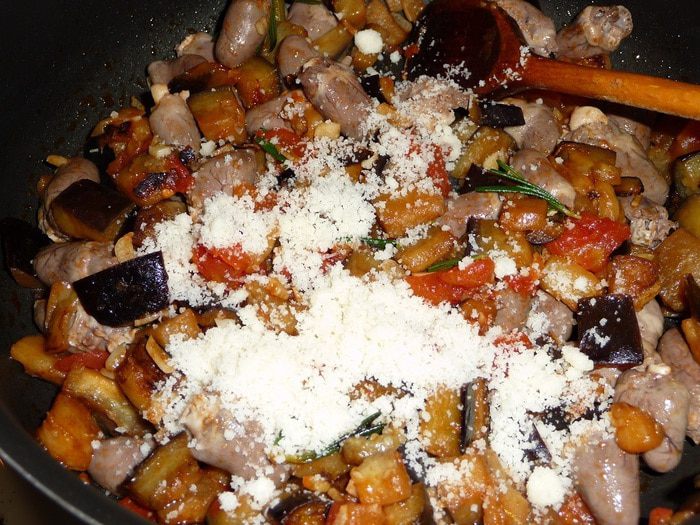 Влить томаты в собственном соку, розмарин нарвать, протушить пару минут. Соль, специи по вкусу.