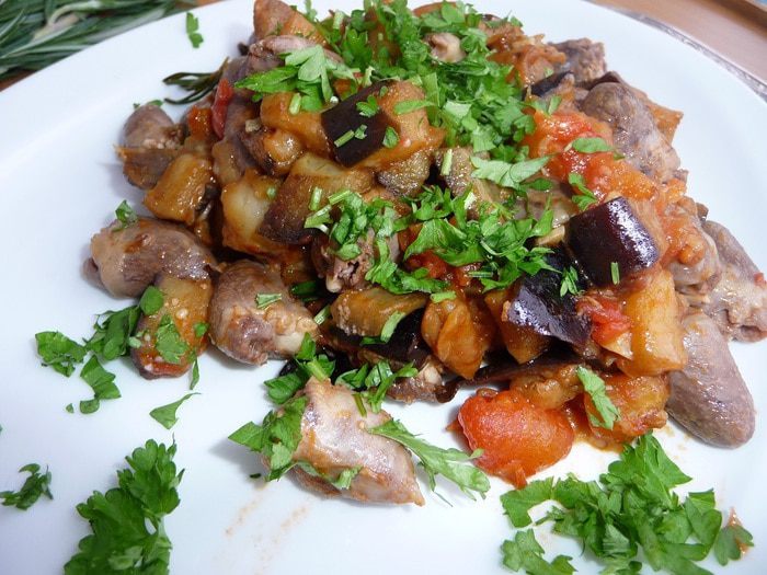Предлагаю простой и доступный рецепт из куриных сердечек с баклажанами. Готовится очень быстро. Получается вкусно и ароматно. Сердечки можно заменить на куриные желудочки. Для любителей гарниров, можно отварить пасту, рис или приготовить картофельное пюре.