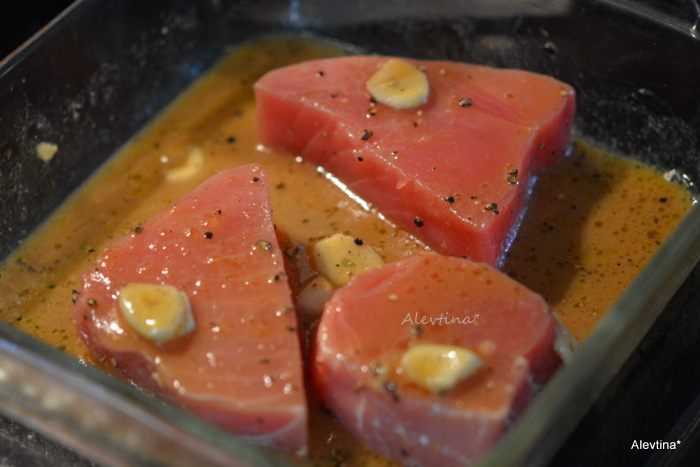 Если готовим на гриле, предварительно его разогреть и смазать стейки кисточкой. Готовим 5 минут или до готовности стейков. Для духовки предварительно разогреть ее на 200°C. Стейки выложить в блюдо для запекания, полить ложкой готовым соусом. Поставить в духовку на 15 мин. или до готовности.