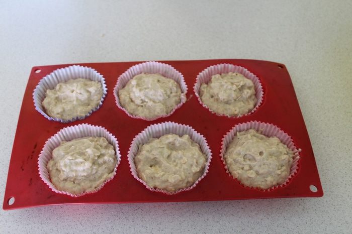 Выпекаем кексы в разогретой духовке 180°C, минут 20-25, готовность проверить деревянной шпажкой.