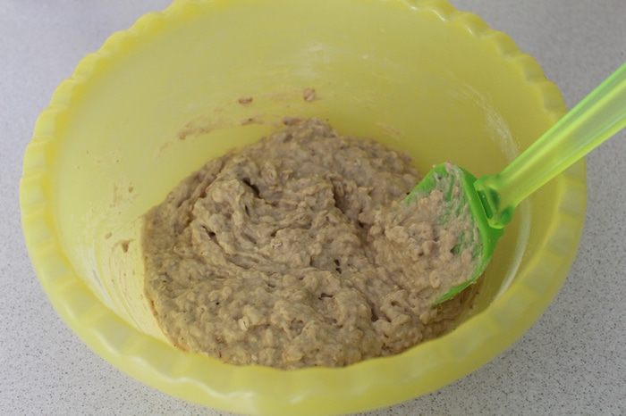 Затем смешать банановую смесь вместе с мучной.