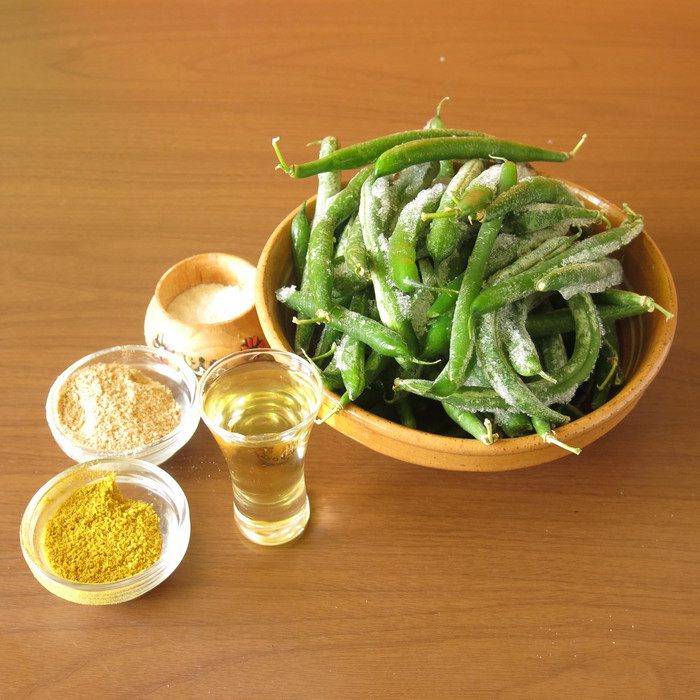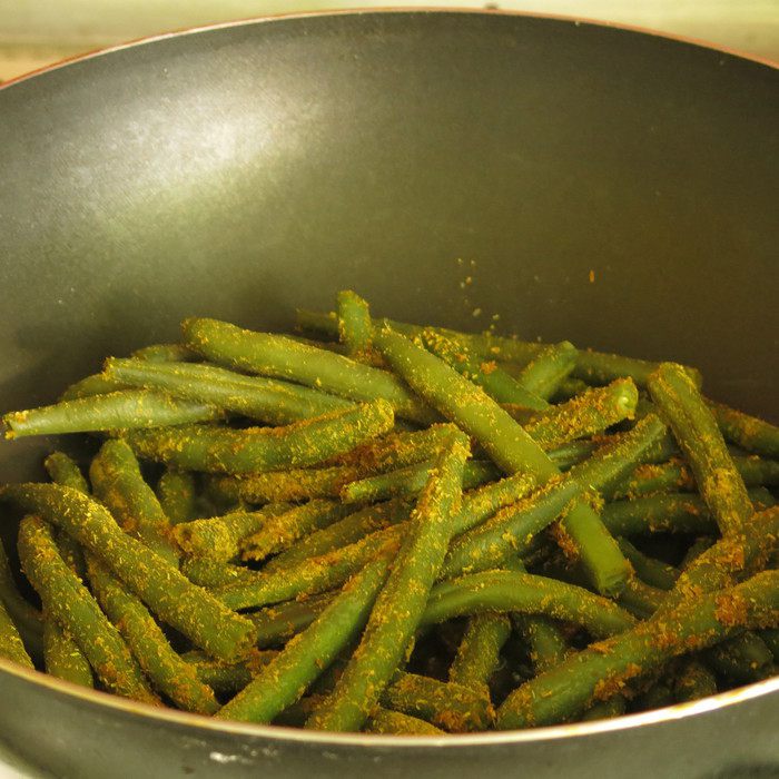 Разогреваем масло и жарим фасоль 5 минут.