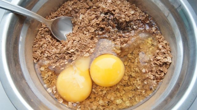 Добавить яйца и растительное масло. Хорошенько перемешать.