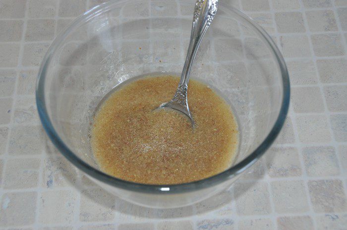 В отдельной миске смешать растительное масло, апельсиновый сок и заваренное льняное семя.