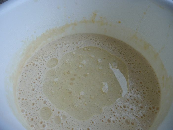 Муку вводить частями, размешивая все комочки.