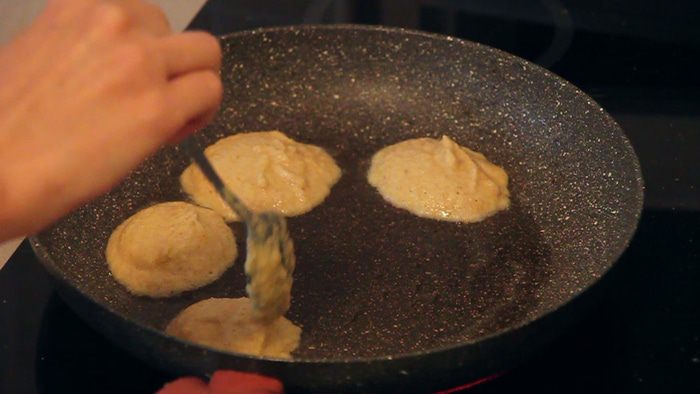 Наливаем на сковороду растительное масло и начинаем выкладывать наши постные «бризольки» с помощью обычной столовой ложки.