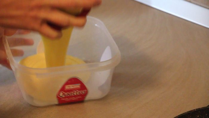 Получившуюся смесь пересыпаем в емкость, где и будем все смешивать.