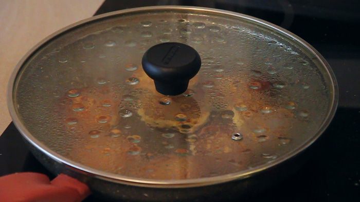 Затем переворачиваем и накрываем крышкой для того, чтобы постные «бризольки» немного пропарились.