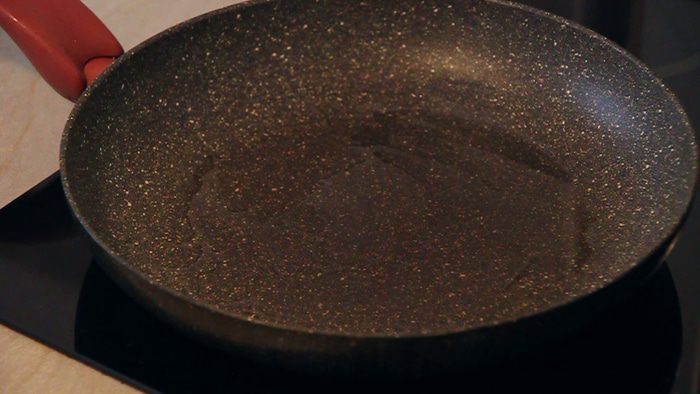 Наливаем в сковороду немного растительного масла и ставим на плиту.