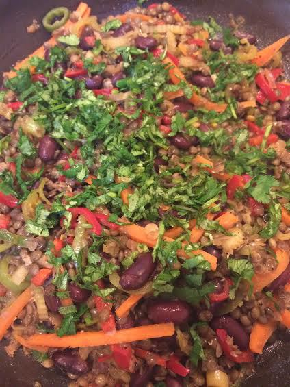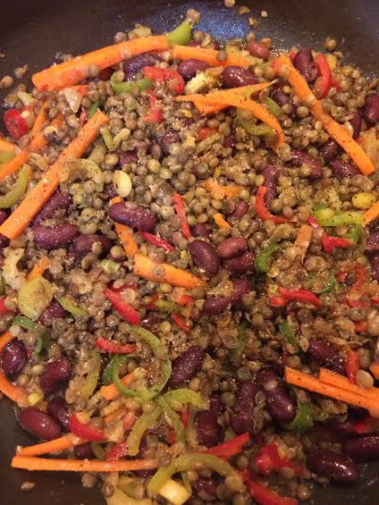 Добавить фасоль, 1 ст. л. соевого соуса, перец и перемешать.